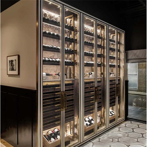 酒莊玫瑰金不銹鋼恒溫酒柜酒窖定做_不銹鋼恒溫酒柜廠家圖