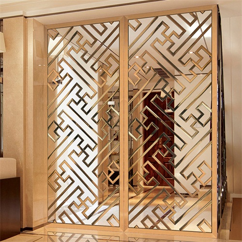 8K鏡面鈦金不銹鋼花格屏風(fēng)_高檔不銹鋼屏風(fēng)廠