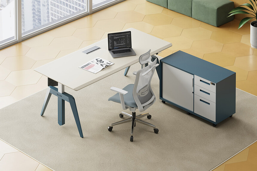 - 方案A:奶油灰噴粉臺面+星云灰腳 方案B:奶油灰噴粉臺面+暗夜綠腳 方案C:奶油灰噴粉臺面+星空藍腳 (標配:雙電機電動升降+323翻蓋線蓋+集成線盒)