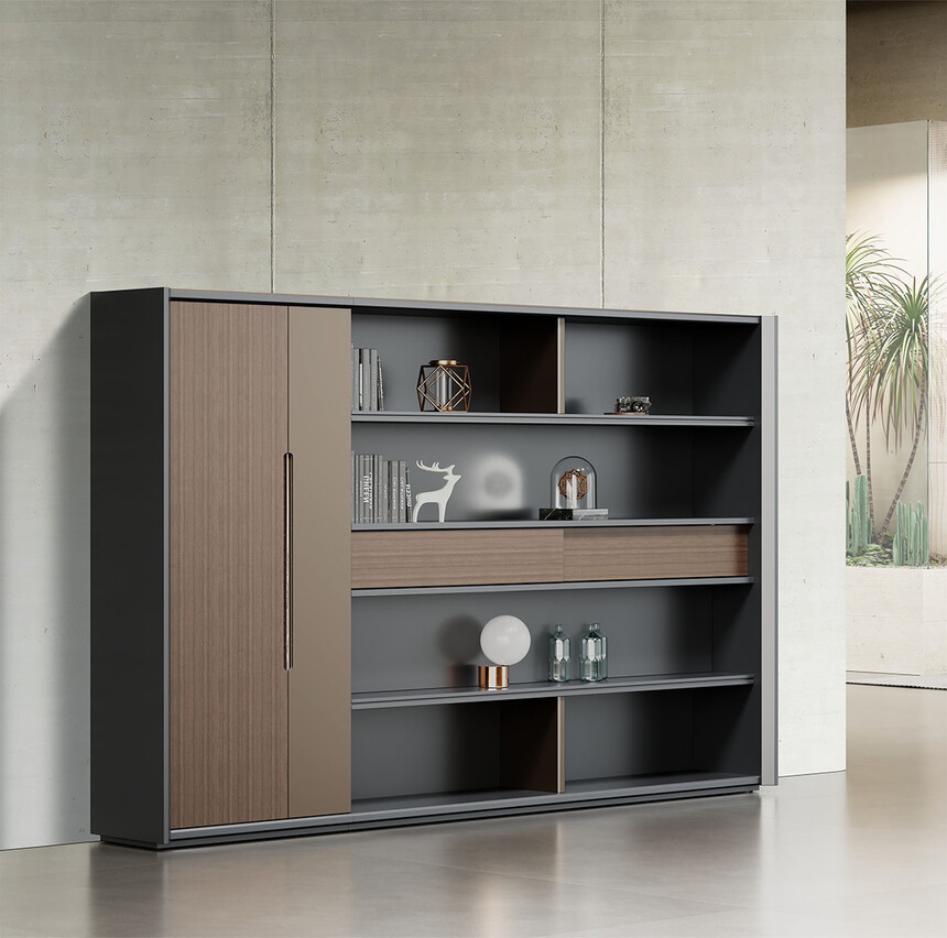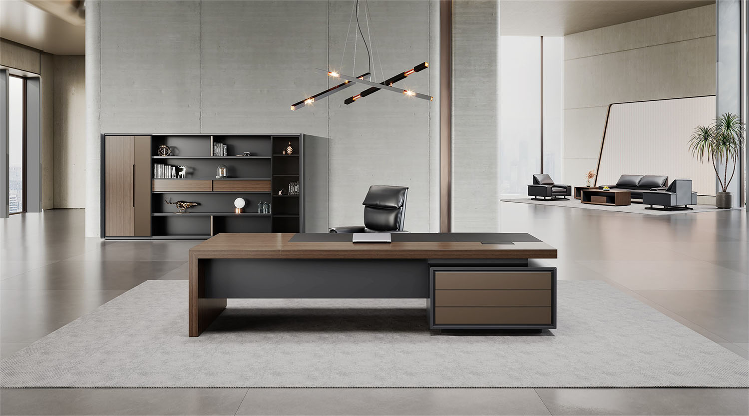 明哲系列辦公家具,采用直紋胡桃和星空灰實(shí)色漆元素,高檔實(shí)木質(zhì)感飾面,深邃飽滿,紋理清晰,內(nèi)蘊(yùn)深厚。搭配簡(jiǎn)約端正的造型設(shè)計(jì),臺(tái)腳的斜切裝置,還有產(chǎn)品的布局變化,錯(cuò)落有致,承前啟后,展現(xiàn)極致簡(jiǎn)潔和視覺(jué)效果的完美詮釋。低調(diào)又不失時(shí)尚,穩(wěn)重又不失靈動(dòng),既營(yíng)造現(xiàn)代時(shí)尚的情緒,還給當(dāng)今辦公環(huán)境注入明亮、輕松的舒適感。