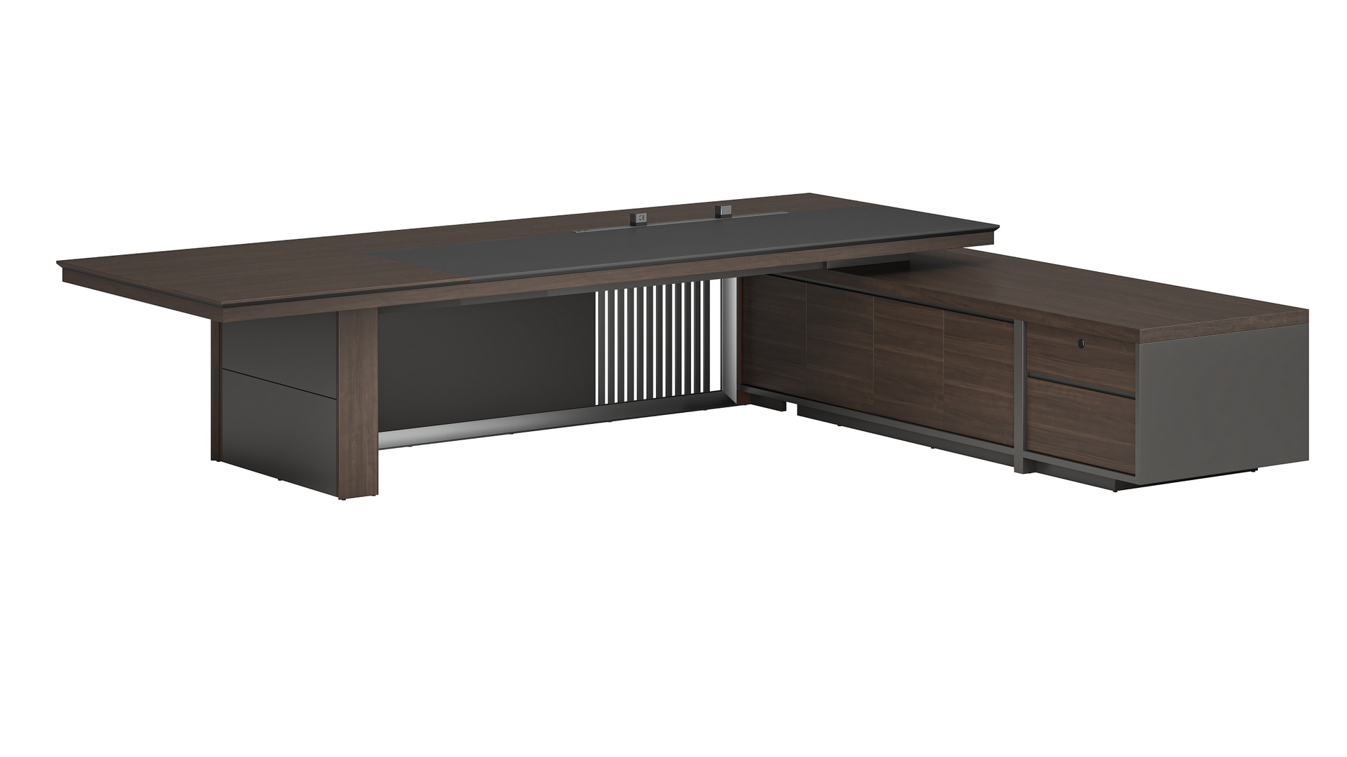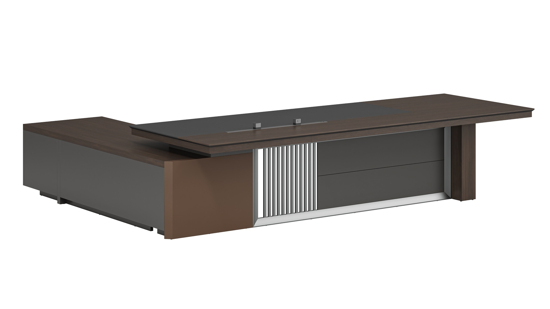 - 烏金胡桃+深鐵灰 (海島青皮#+黃棕色皮,抽屜帶指紋鎖)