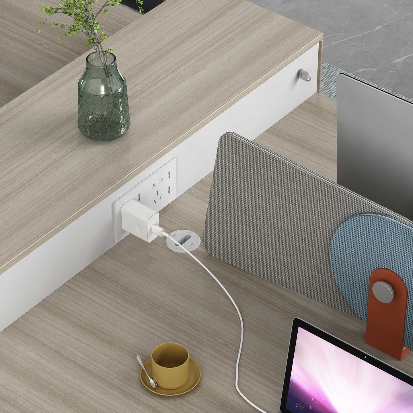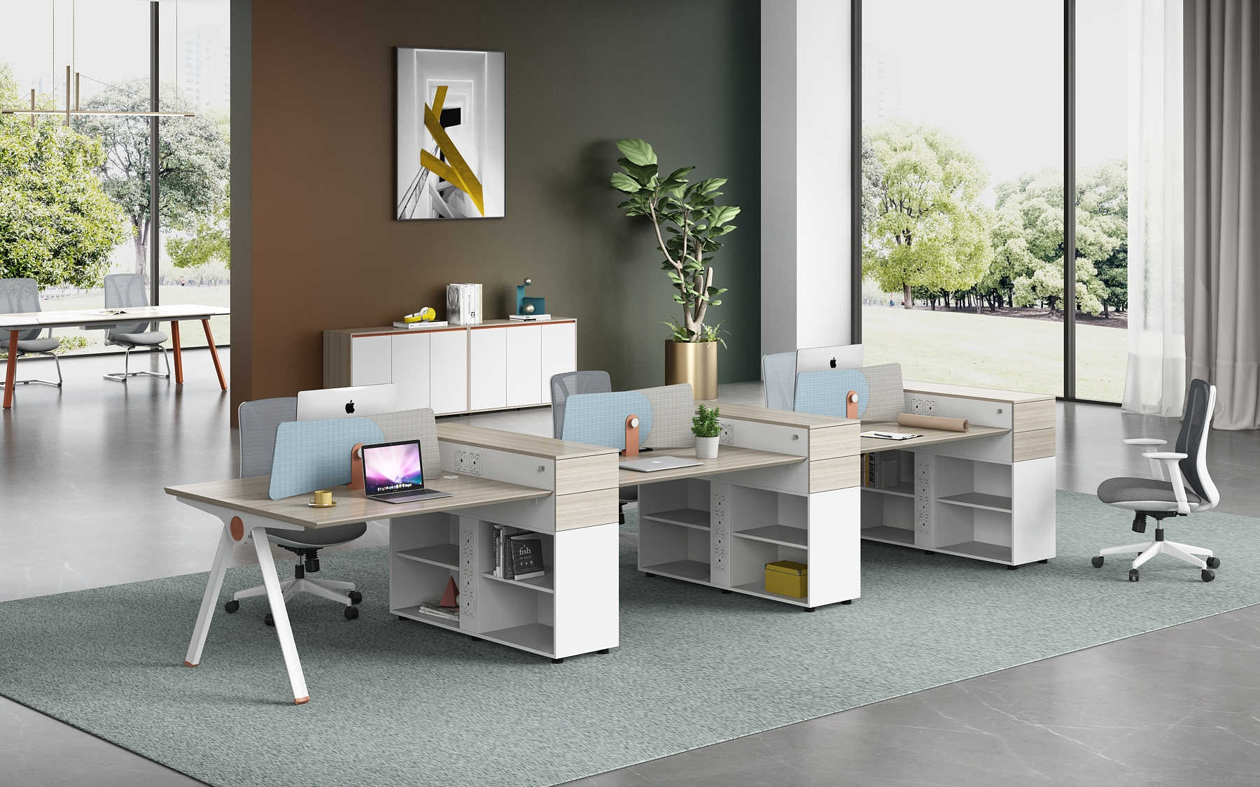 優(yōu)格又名“有格”,代表了有品格、有格調(diào)。產(chǎn)品整體以“青春、時(shí)尚、動(dòng)感”為設(shè)計(jì)主題,采用了大量的弧形與直線條交叉設(shè)計(jì),將產(chǎn)品魅力展示的淋漓盡致。在一貫沉穩(wěn)的深色辦公配色中,大膽運(yùn)用了白色、卡其棕色與淺色木紋的撞色搭配,打破產(chǎn)品配色原有的嚴(yán)肅氛圍,賦予了產(chǎn)品生命力以及活力。獨(dú)特的臺腳與桌屏設(shè)計(jì),動(dòng)感十足,無不展示產(chǎn)品的細(xì)節(jié)之美。產(chǎn)品設(shè)計(jì)時(shí)尚,配置齊全,適合各種規(guī)模的辦公場所。